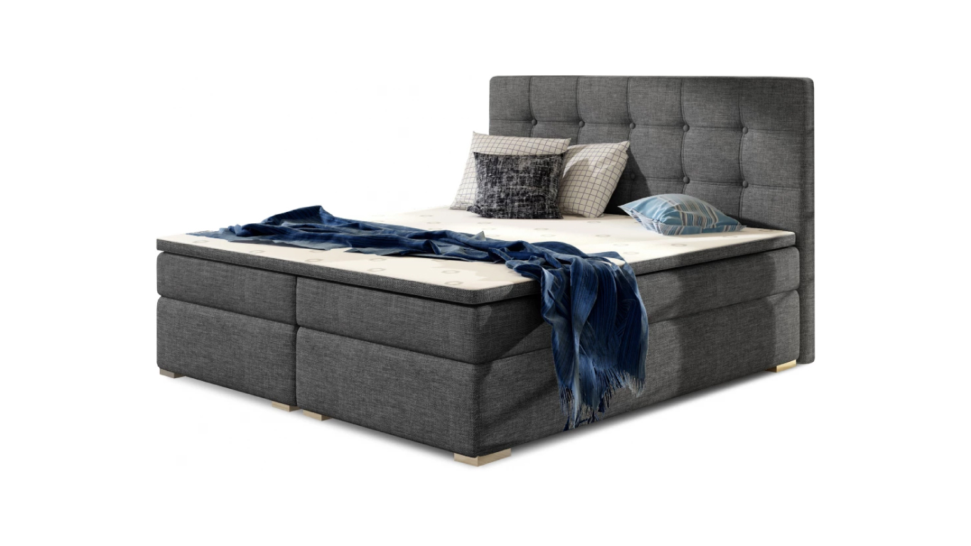 Łóżko Inez to eleganckie łóżko kontynentalne, które łączy nowoczesny design z funkcjonalnością. Wysokie, tapicerowane zagłówki z ozdobnymi przeszyciami nadają mu wyjątkowy, stylowy wygląd. Model ten dostępny jest w różnych rozmiarach, takich jak 140×200 cm, 160×200 cm oraz 180×200 cm, co umożliwia dopasowanie go do różnych potrzeb użytkowników. Łóżko składa się z solidnej podstawy bez pojemnika na pościel, sprężynowego materaca bonellowego, a także komfortowego toppera wykonanego z pianki. Tapicerka dostępna jest w szerokiej gamie tkanin, takich, co pozwala na łatwe dopasowanie mebla do stylu wnętrza. Łóżko Inez łączy komfort snu z eleganckim wyglądem i funkcjonalnością.