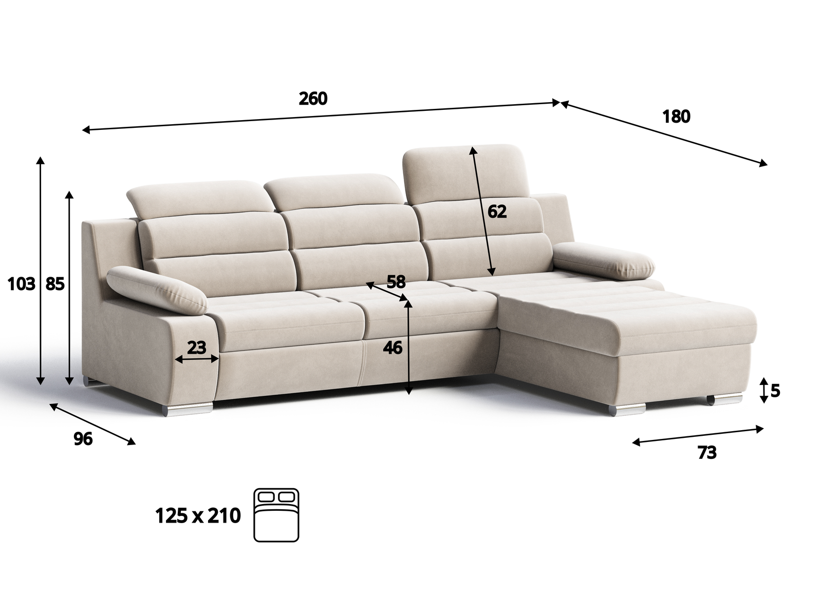 Narożnik Amber Mini to komfortowy narożnik zaprojektowany z myślą o codziennym wypoczynku. Nowoczesna bryła, regulowane zagłówki oraz funkcja spania zapewniają wygodę zarówno w ciągu dnia, jak i nocą.