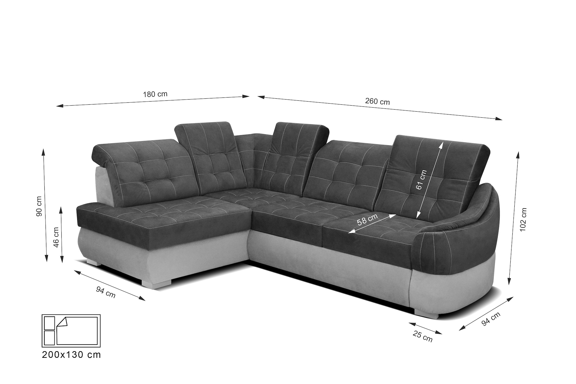 • możliwość wyboru strony narożnika: LEWA / PRAWA