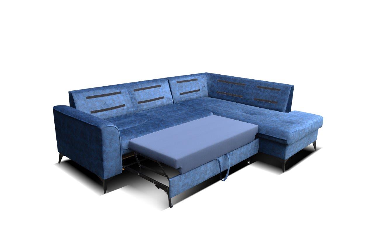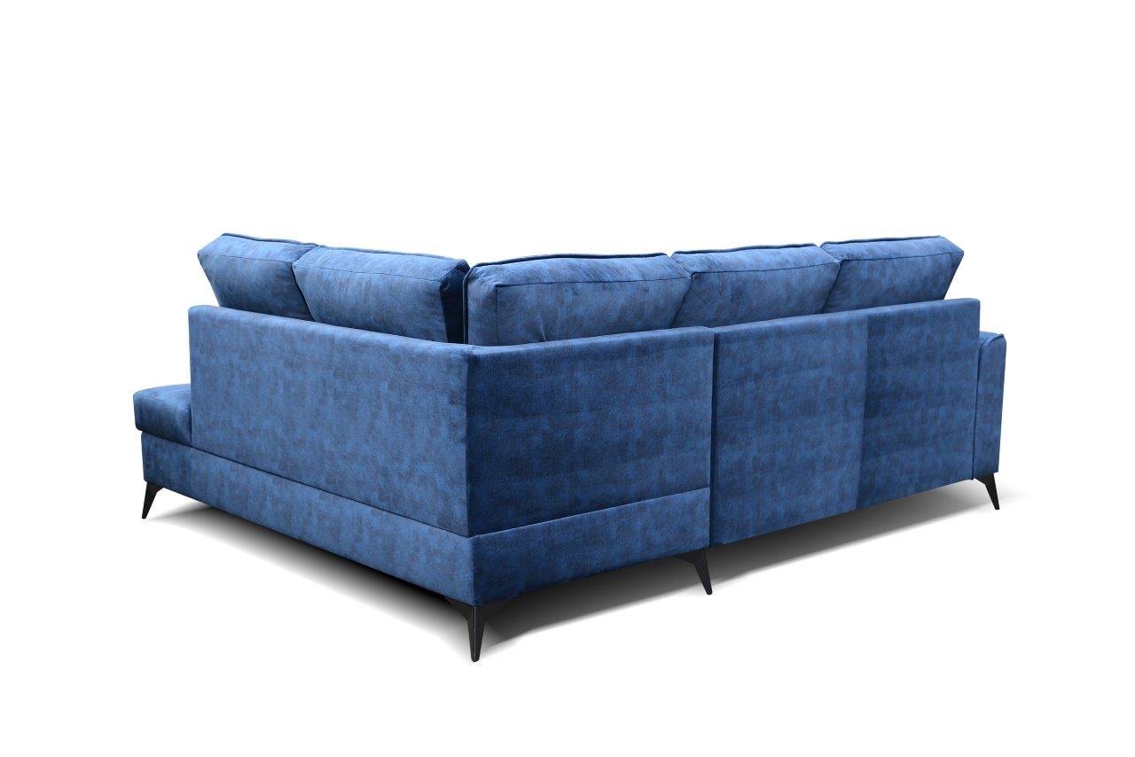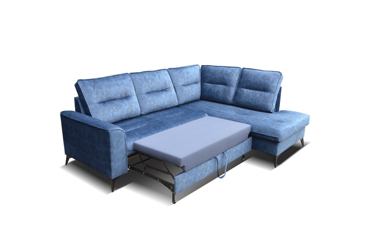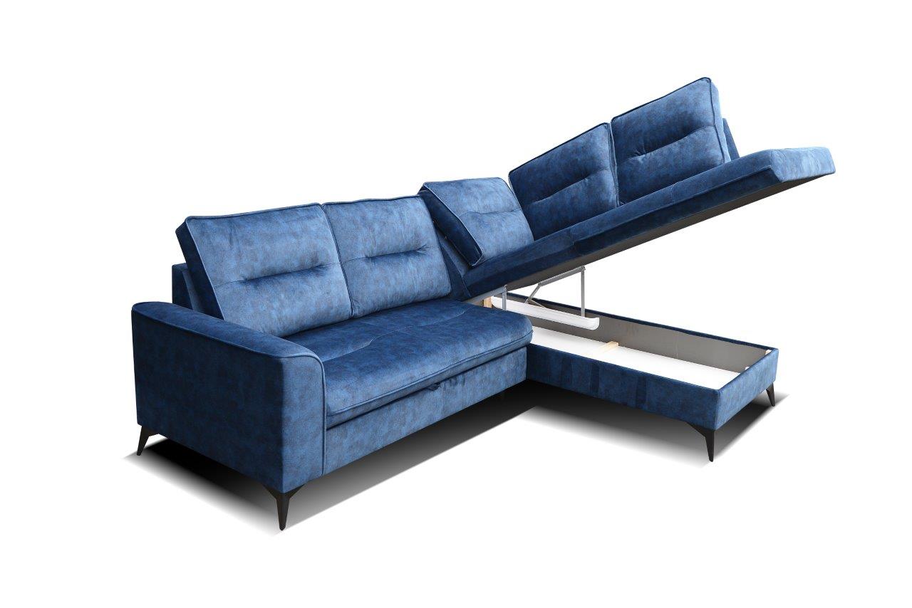 Poduchy są mocowane na rzepy, co zapobiega ich przesuwaniu się podczas użytkowania, a jednocześnie umożliwia ich łatwe zdejmowanie i utrzymanie czystości. Możliwość wyboru strony narożnika pozwala dopasować mebel do układu pomieszczenia. Dzięki funkcji rozkładania opartej na mechanizmie DELFIN, narożnik szybko zamienia się w wygodną powierzchnię do spania, a pojemnik na pościel oferuje praktyczne miejsce do przechowywania tekstyliów.