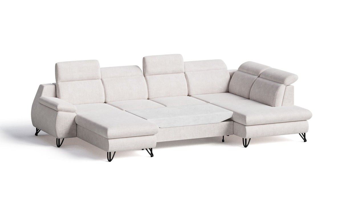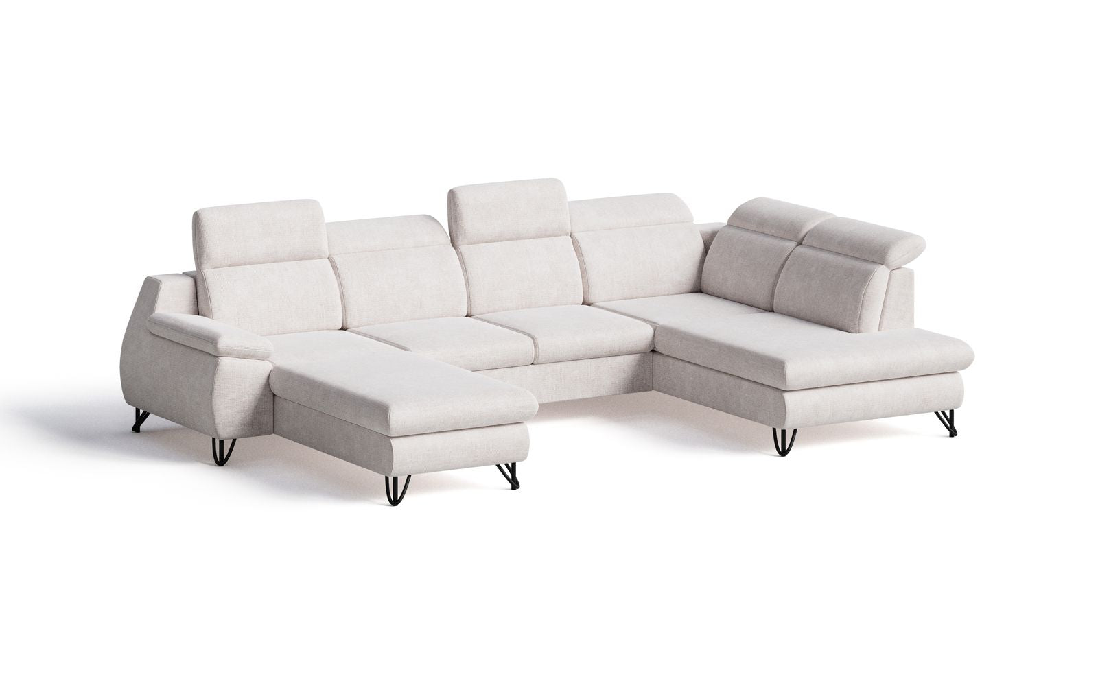 Narożnik Iverto U to komfortowy narożnik zaprojektowany z myślą o codziennym wypoczynku. Nowoczesna bryła, regulowane zagłówki oraz funkcja spania zapewniają wygodę zarówno w ciągu dnia, jak i nocą.