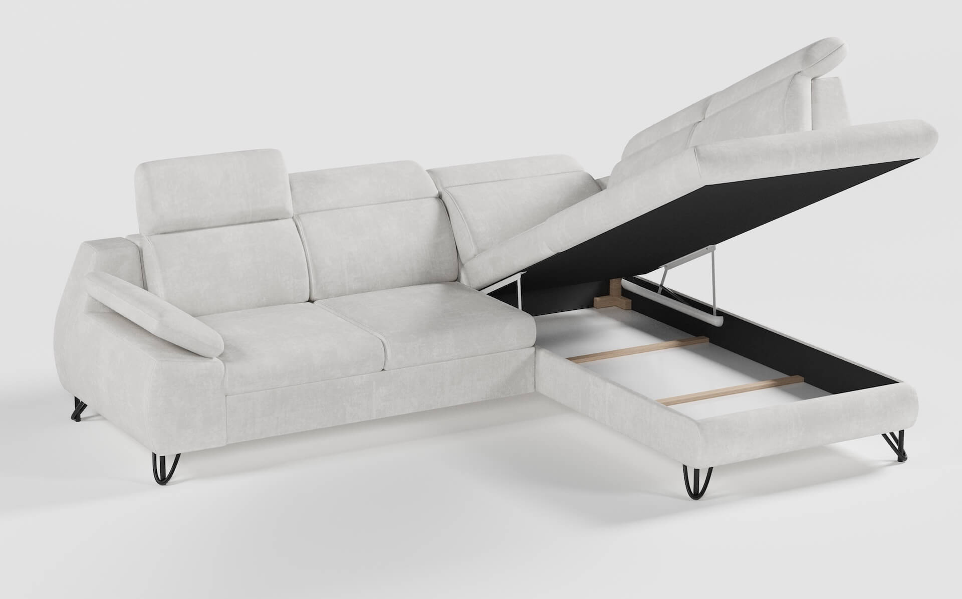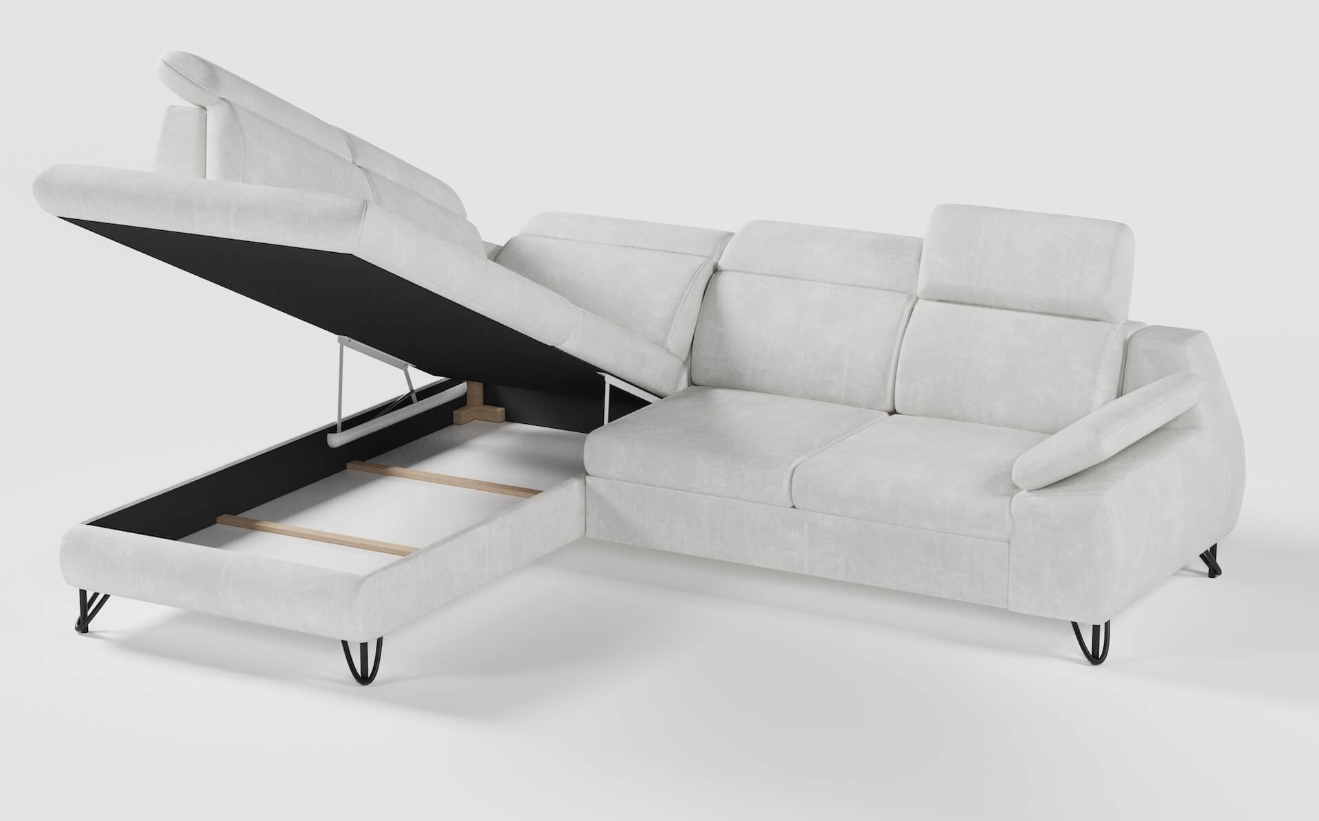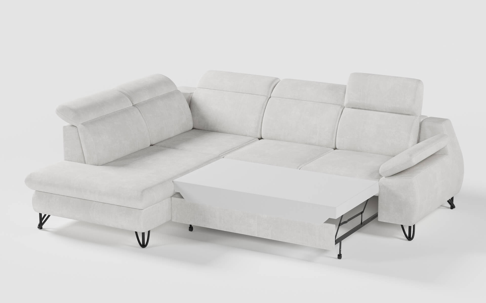 Kluczowym elementem narożnika są pięć regulowanych zagłówków, które umożliwiają swobodne dopasowanie wysokości oparcia do potrzeb użytkownika – podczas lektury, oglądania telewizji czy popołudniowej drzemki. Dodatkowy komfort zapewnia regulowany podłokietnik, pozwalający na jeszcze lepsze dopasowanie pozycji siedzącej. IVERTO wyposażony jest także w funkcję rozkładania opartą na systemie DELFIN, dzięki czemu w łatwy sposób przekształca się w wygodne miejsce do spania. Obszerny pojemnik na pościel dodatkowo zwiększa funkcjonalność, pomagając utrzymać porządek w salonie.