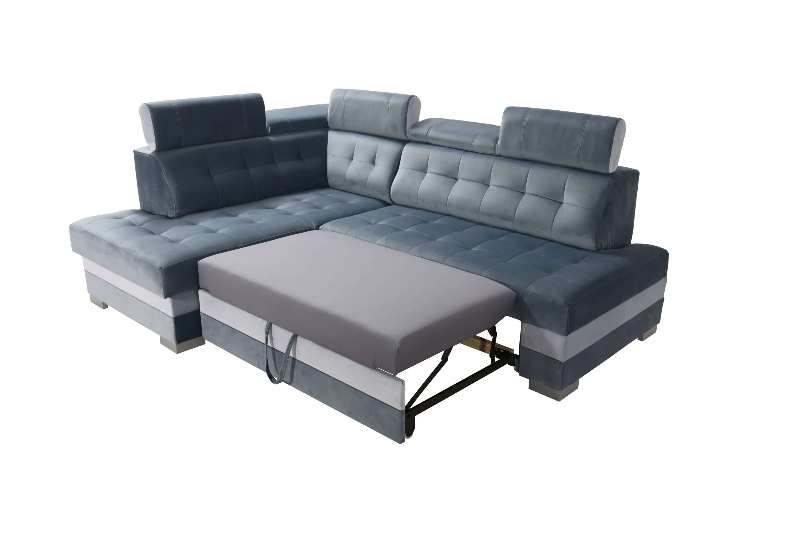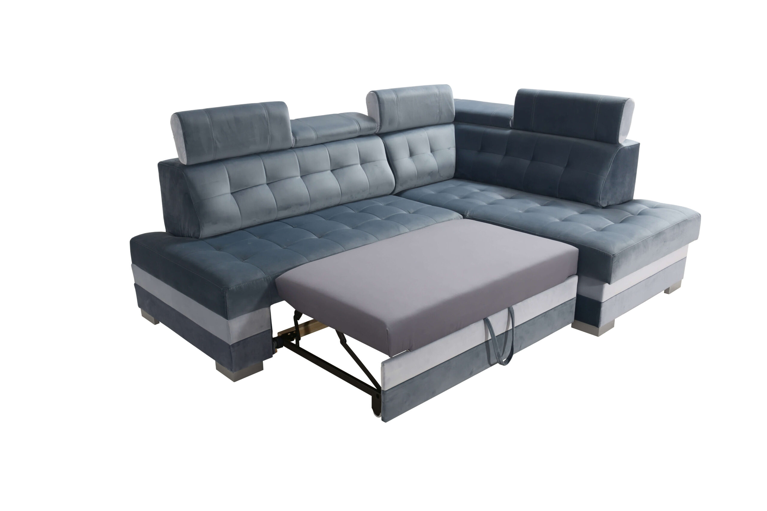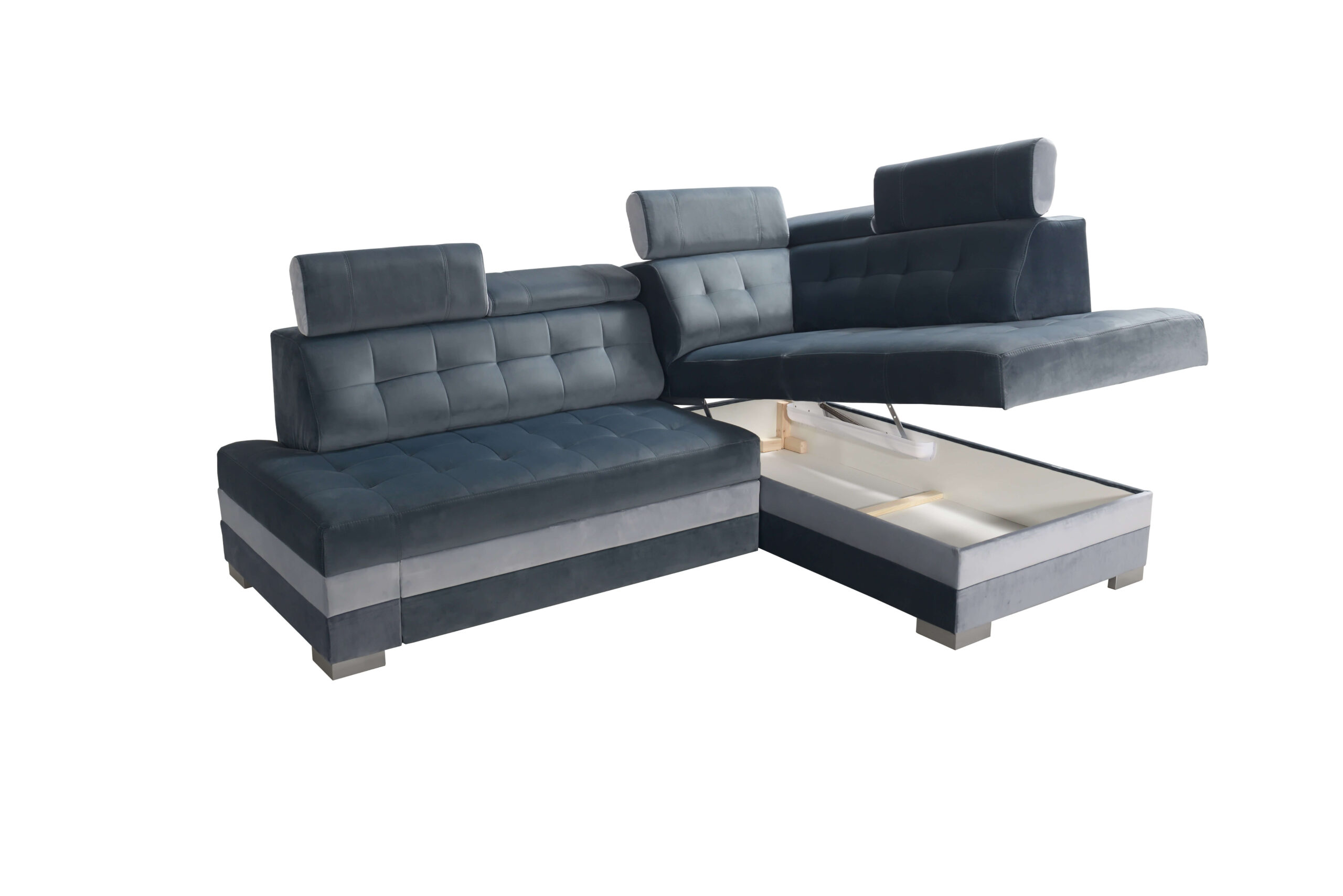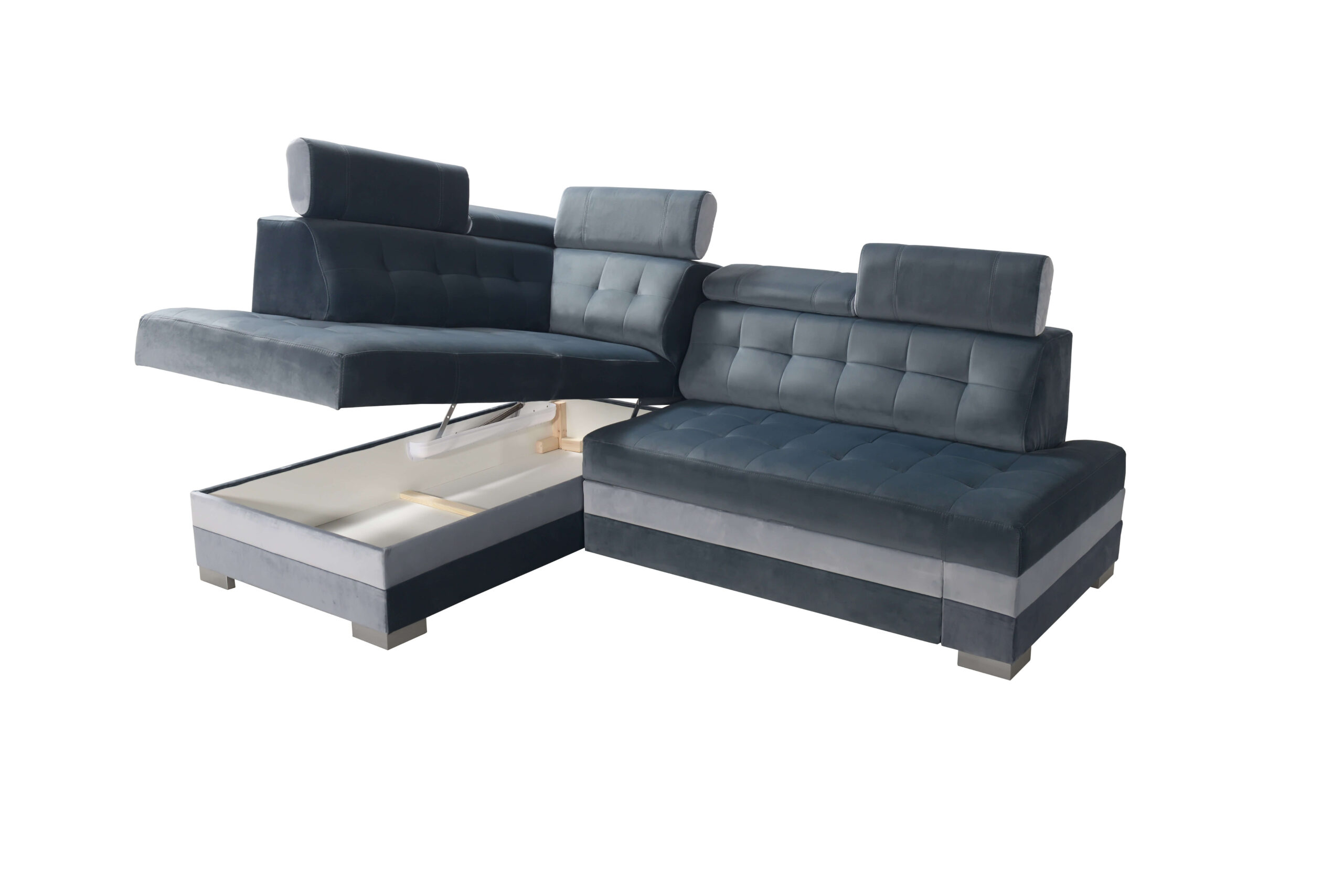 Model został wyposażony w 5 regulowanych zagłówków, które pozwalają idealnie dopasować kąt podparcia głowy i szyi. To funkcjonalne rozwiązanie podnosi komfort podczas oglądania telewizji, odpoczynku czy pracy z laptopem. PARIS posiada również pojemną funkcję spania – dzięki mechanizmowi DELFIN powstaje wygodna powierzchnia, idealna do przenocowania domowników lub gości. Pojemnik na pościel z łatwością pomieści koce, poduszki i inne niezbędne akcesoria, pomagając utrzymać porządek w salonie.