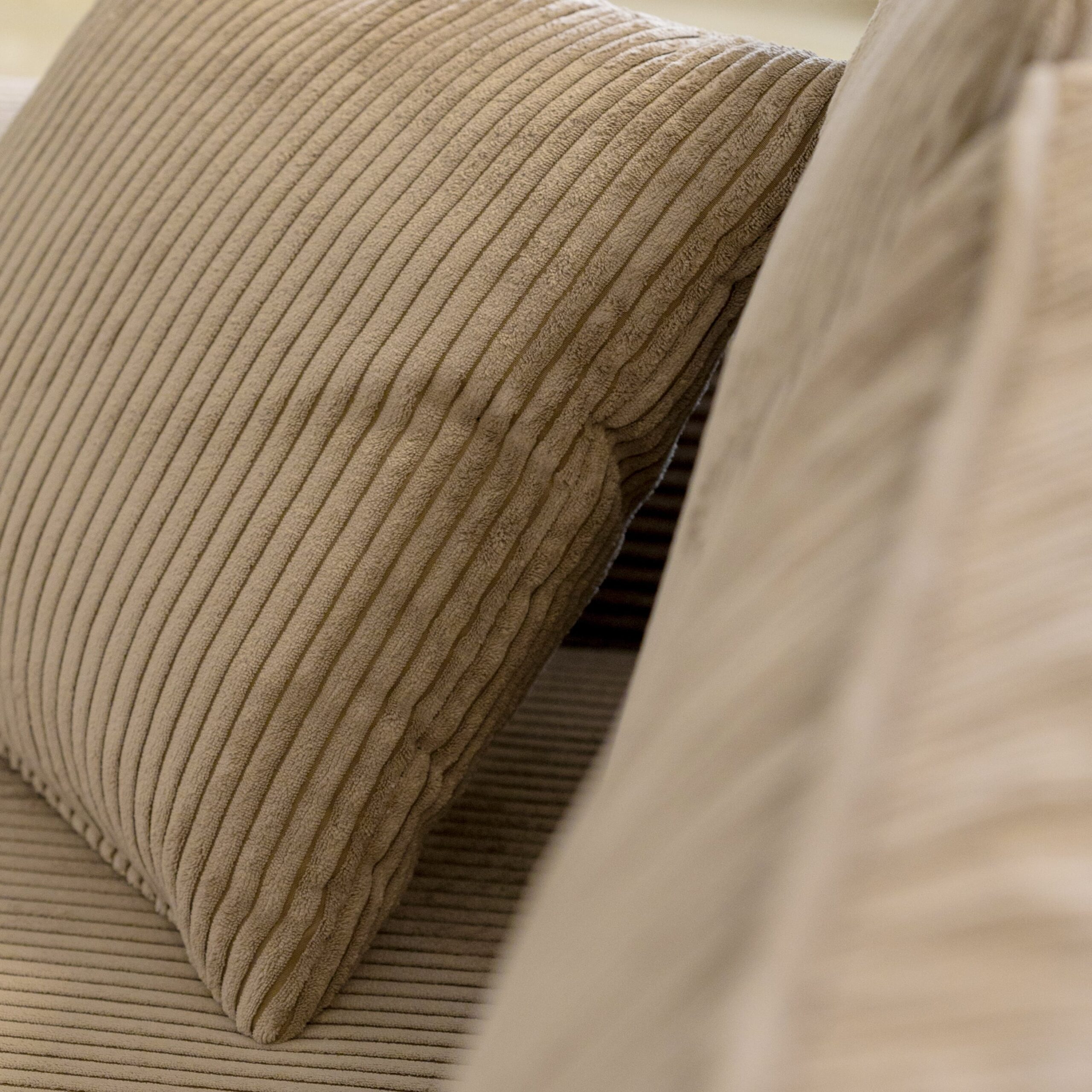 Wyjątkowego charakteru narożnikowi nadaje tkanina ZOOM, o wyrazistej, prążkowanej strukturze przypominającej gruby sztruks. Jest niezwykle miękka i ciepła w dotyku, a jednocześnie trwała i łatwa do utrzymania w czystości dzięki technologii EASY CLEAN, która ogranicza wchłanianie płynów. Materiał posiada certyfikat Oeko-Tex, co potwierdza jego bezpieczeństwo oraz przyjazność dla alergików.