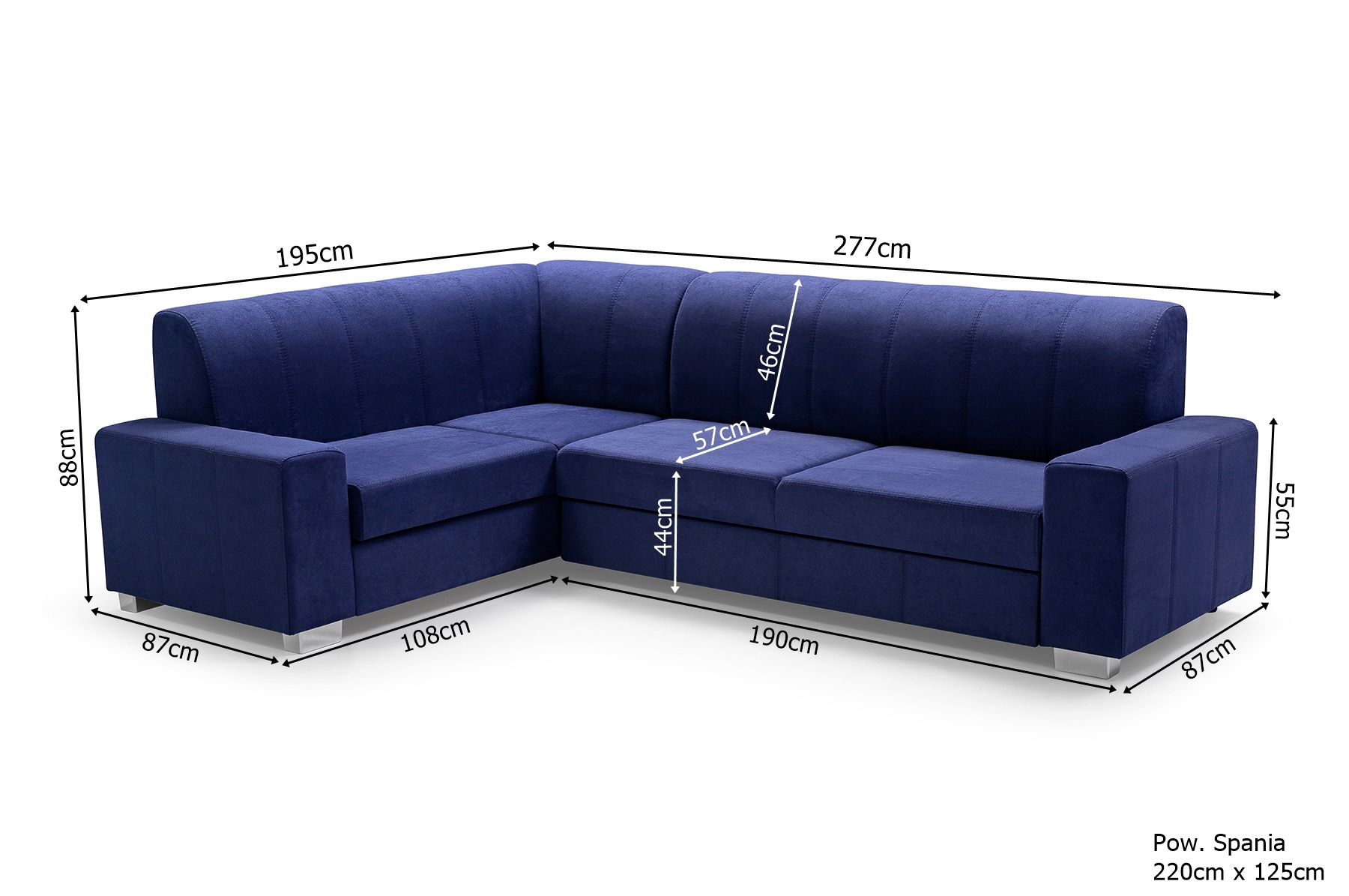 • funkcja rozkładania narożnika daje powierzchnię spania 125×220 cm