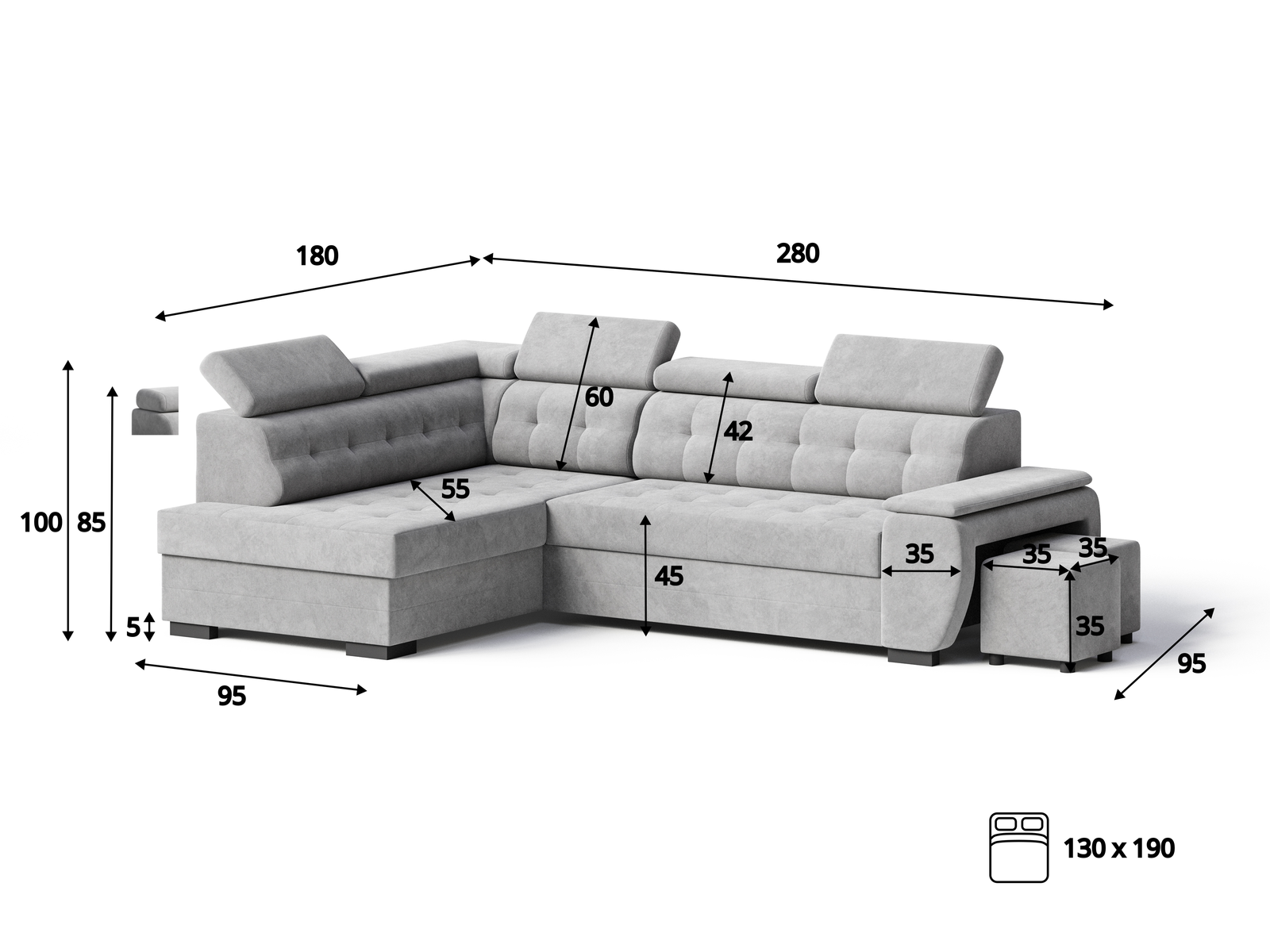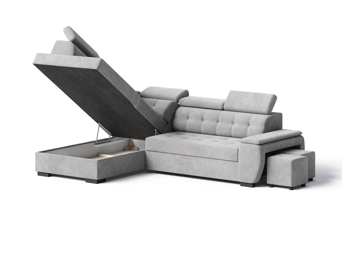 Narożnik Grand L to komfortowy narożnik zaprojektowany z myślą o codziennym wypoczynku. Nowoczesna bryła, regulowane zagłówki oraz funkcja spania zapewniają wygodę zarówno w ciągu dnia, jak i nocą.
