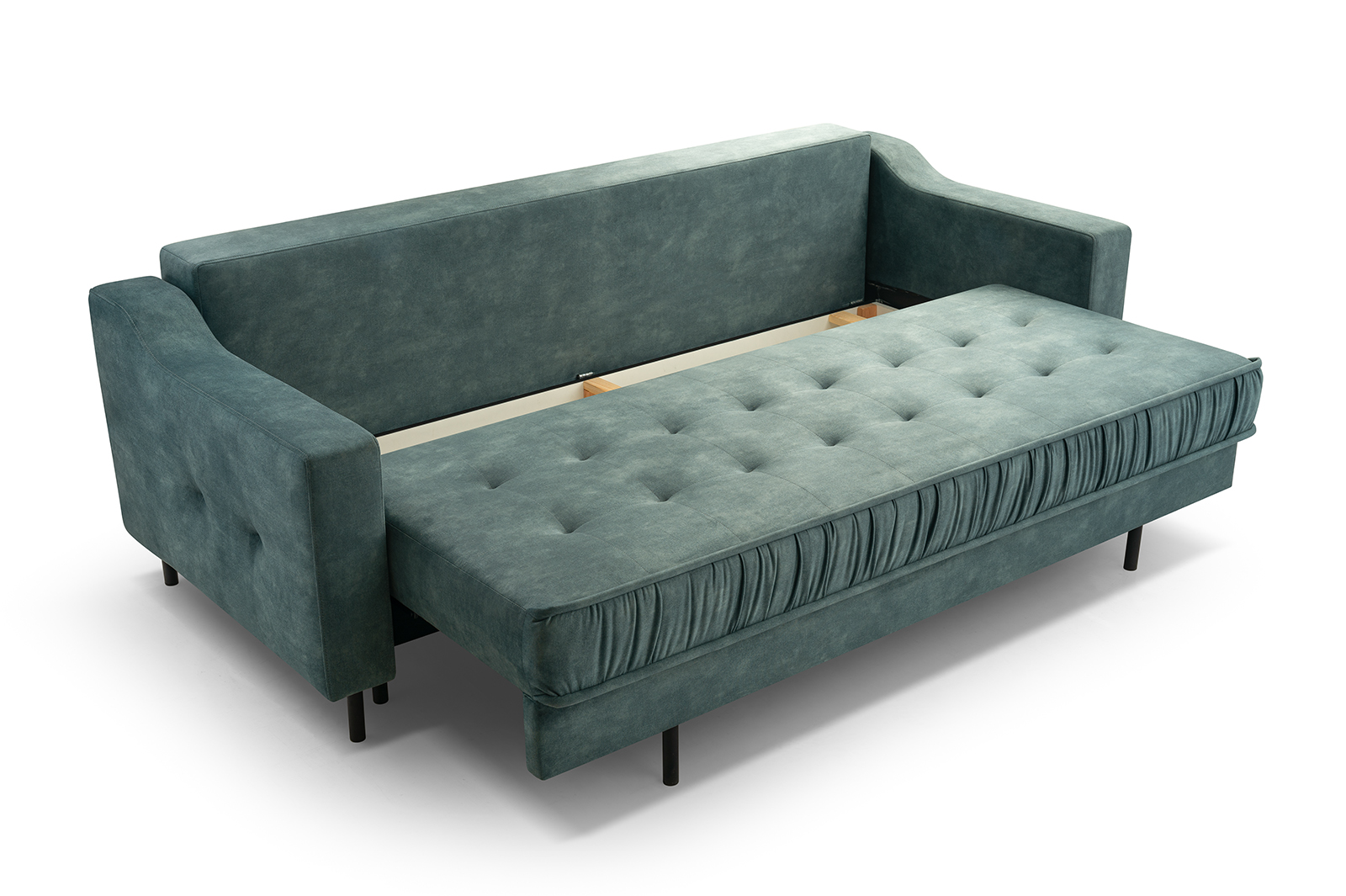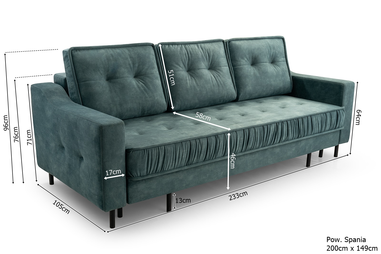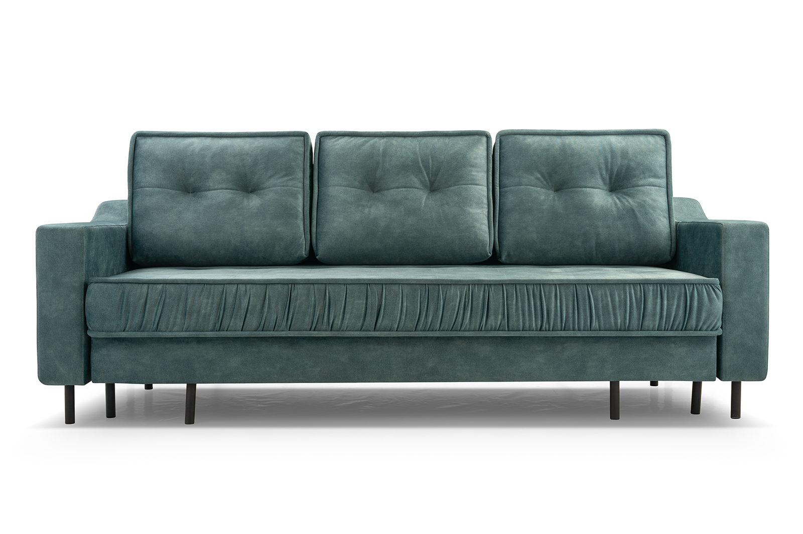 Nowoczesna sofa łącząca stylowy wygląd z codzienną funkcjonalnością. Prosta forma uzupełniona ozdobnymi marszczeniami na siedzisku i bokach nadaje meblowi elegancki, dekoracyjny charakter. Uniwersalne wykończenie sprawia, że sofa doskonale pasuje zarówno do klasycznych, jak i nowoczesnych wnętrz, oferując wygodę na co dzień.